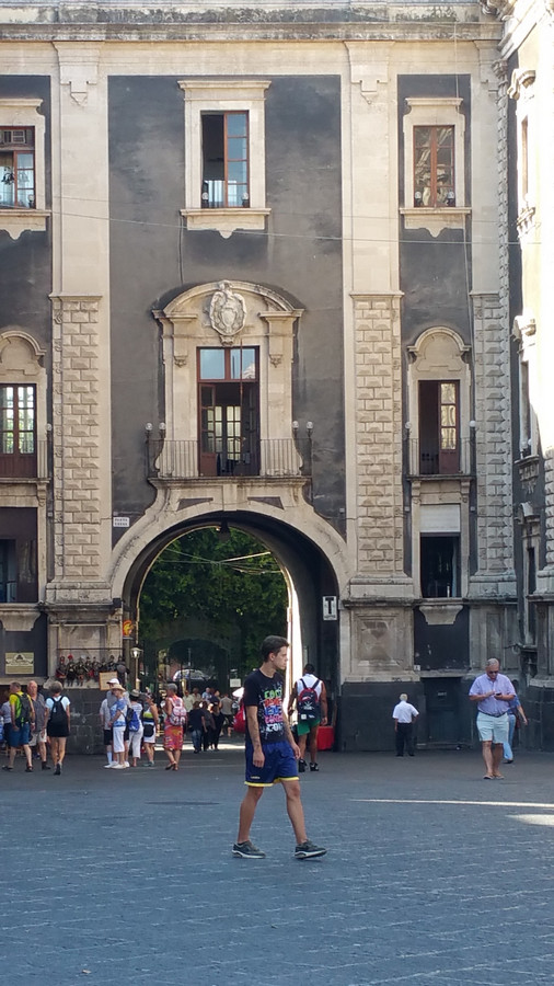Au fond, on voir le passage en arcades vers le Palazzo Arcivescovile (Porta Uzeda)