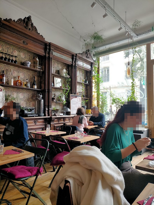 C'était un déjeuner. J'ai choisi ma table, hésitant entre plusieurs coins, près du placard ou du passage.