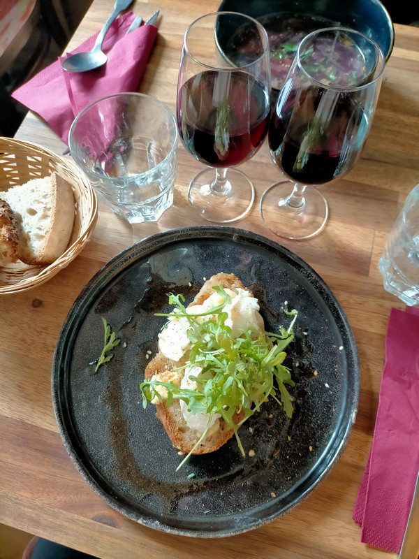 Et là, premier coup de cœur. Nous étions deux, c'était midi. On se dit qu'on va partager un verre de vin. Mais surprise : le patron nous apporte deux verres, offrant le deuxième non par obligation, mais simplement pour dire : "Mon vin est trop bon, il serait dommage de n'en boire qu'un verre."