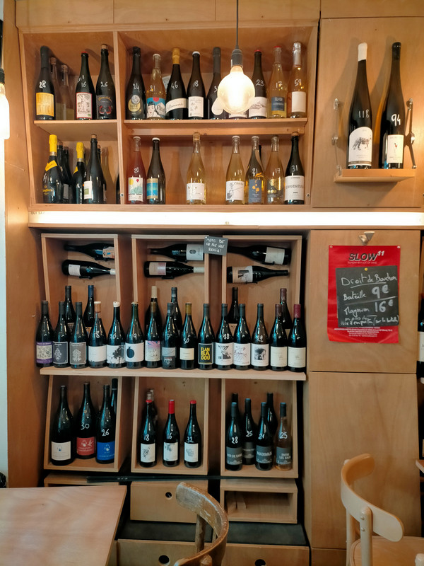 Un très bon Bar à Vins. Joyeux, amical et bien entendu avec une très bonne sélection de vins. A la fois boutique et bar. Il y a des tables, des rebords de fenêtres.
