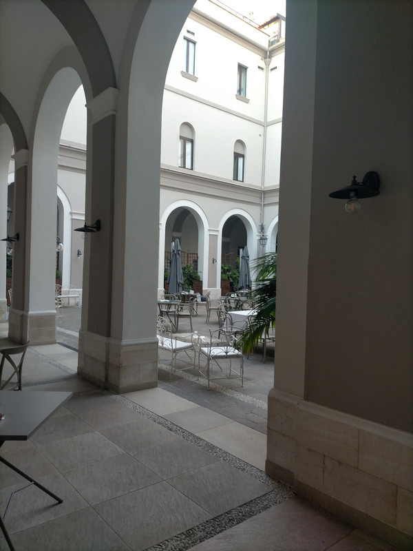 C'est un bar-restaurant qui s'est établi dans un monument de type religieux (je ne me suis pas renseigné, mais la cour intérieure et les colonnes font penser à un ancien couvent).