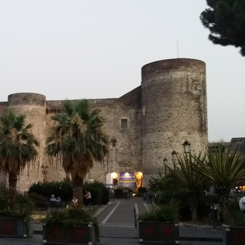 Ce château est au cœur de Catane, sur une place, Piazza Federico II di Svevia, dans un quartier animé, entouré de commerces.