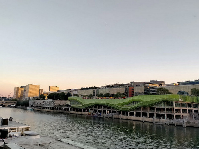 On dirait une péniche au loin, avec cette décoration verte qui fait comme une vague. Vous l'avez sûrement déjà vu si vous passez sur le pont près de la gare d'Austerlitz.
