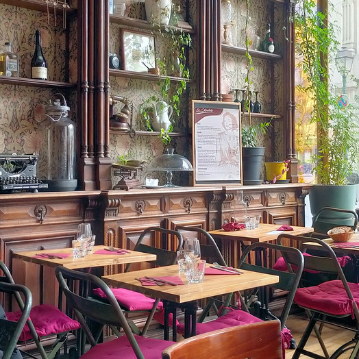 C'est beau. La première chose qui frappe en entrant dans ce restaurant, c'est la beauté du lieu. Le bois est omniprésent : tables, chaises, vieux meubles, chaque détail contribue à une atmosphère chaleureuse voire intellectuelle. Les photos accrochées aux murs semblent raconter une histoire.