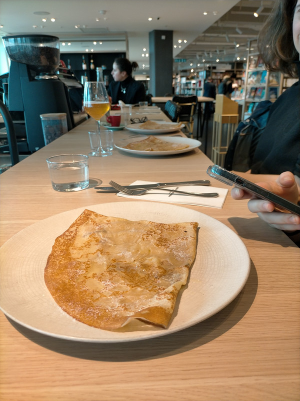 Oui, les crêpes sont bonnes. Mais ce qui fait vraiment la magie du lieu, c’est la vue : un panorama sur tout Paris, une petite terrasse discrète, une ambiance paisible. Nichée au cœur de l’espace librairie du magasin, cette crêperie offre un cadre unique où l’on se sent bien, presque ailleurs.
