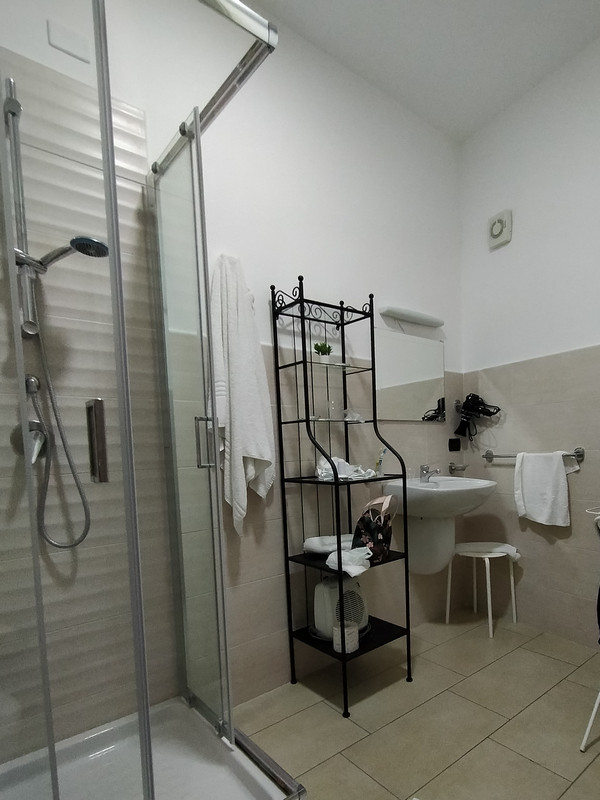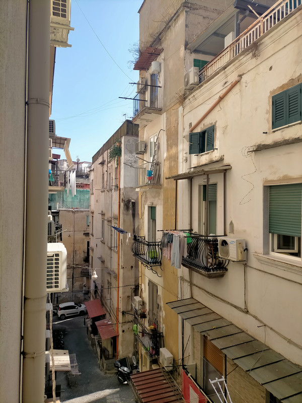 C'est un immeuble entier, situé dans les vieux quartiers de Naples, avec les ruelles, les draps suspendus. Chaque logement a été très bien rénové. C'est un ancien couvent. Dans certaines chambres, la salle de bain est séparée, mais réservée à un logement et assez grande. Ca ne gène pas.